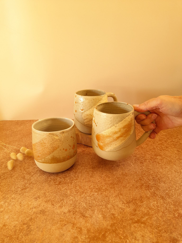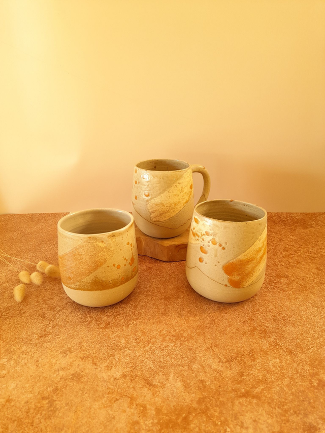 L'émail est à base de Cendres de Chêne, puis est appliqué au pinceau un second émail donnant des teintes oranges, jaunes ou roses.